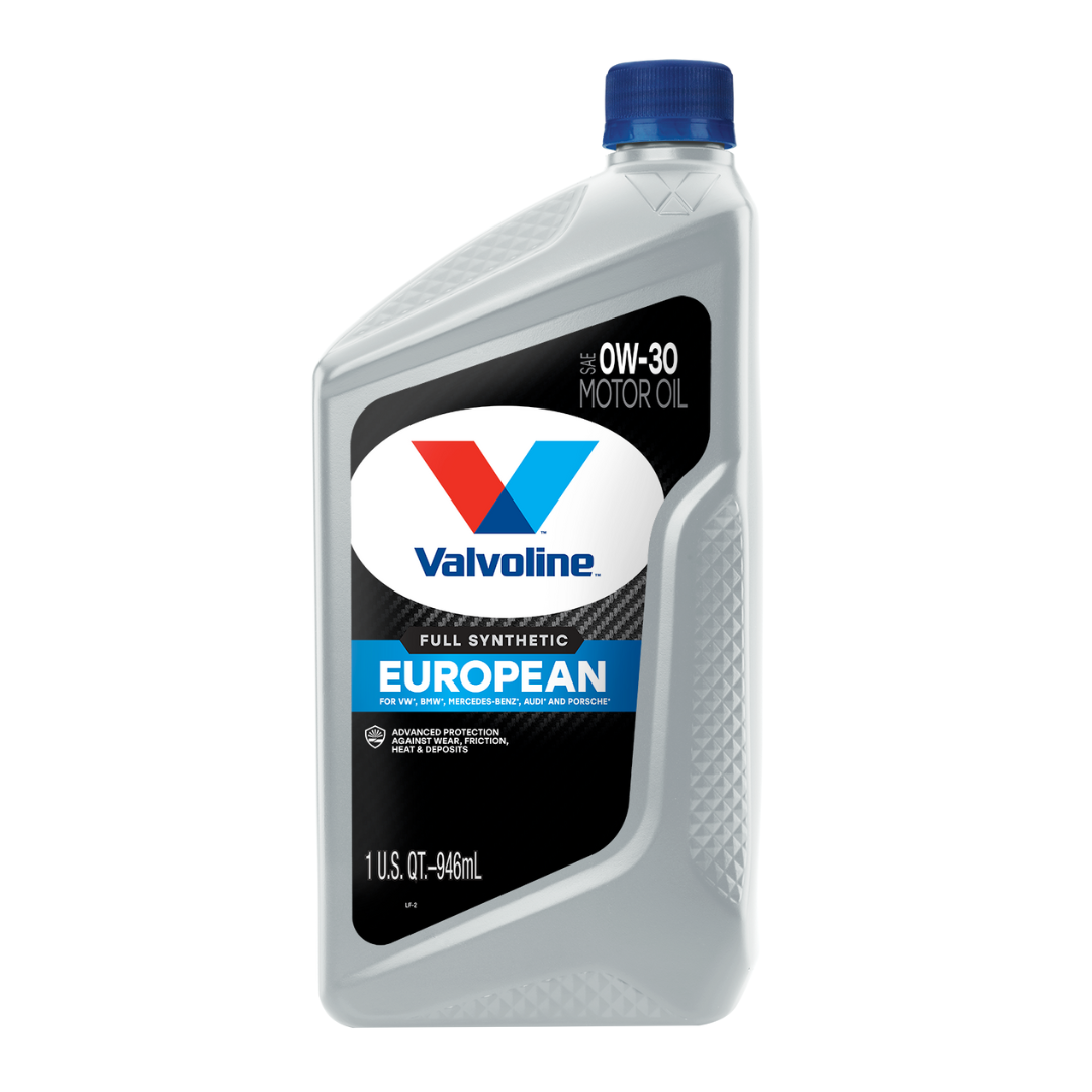 El aceite de motor Valvoline European Vehicle Full Synthetic 0W-30 está diseñado con aceites base sintéticos y aditivos de la más alta calidad, lo que lo convierte en nuestro mejor aceite de motor para cumplir con los rigurosos requisitos de los motores de gasolina y diésel en la mayoría de los autos Audi, BMW, Mercedes Benz, Volkswagen y Porsche. Los antioxidantes superiores de Valvoline resisten la degradación del aceite de motor, y los detergentes adicionales protegen su motor de lodos y depósitos. Ya sea que tenga un sedán, SUV, furgoneta o auto deportivo, Valvoline European Full Synthetic brinda protección avanzada contra el desgaste, el calor, la fricción y los depósitos, las principales causas de averías del motor. La exclusiva fórmula totalmente sintética de Valvoline ayuda a maximizar el rendimiento y optimizar la eficiencia del combustible.