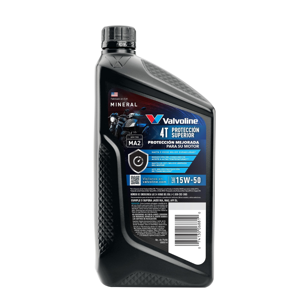 - EL ACEITE PARA MOTOCICLETAS Valvoline 4T está formulado específicamente para motocicletas